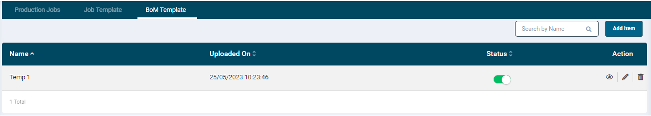 - Action: The user has the option to View, Edit or Delete a BoM record