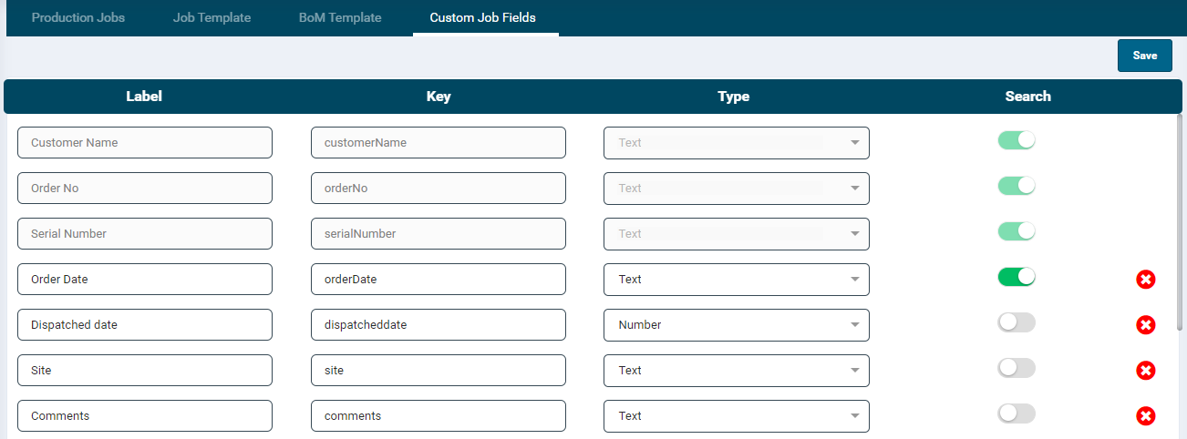 - Certain pre-defined job fields such as Customer Name, Order No, and Serial Number are not editable.