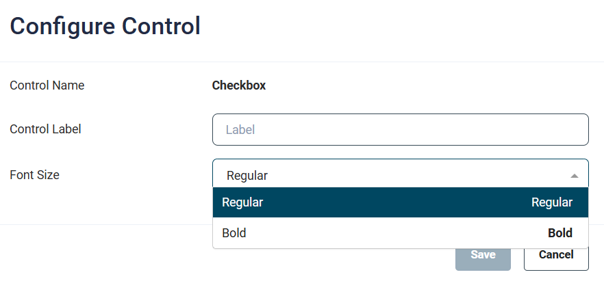- Check Box: The Checkbox is a tick box that allows operators to check and uncheck the completion. It can also be paired with a label to give operators more direction what they are confirming. The Label text can be bold or regular text style