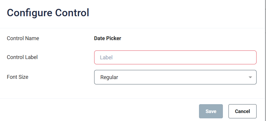 - Date Selection: The date selection allows operators to pick a date from a calendar. This can be paired with a label which gives operators more guide to the purpose of picking a date. The text can be bold or regular.