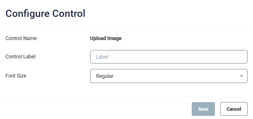 - File/Image Upload: The Upload Image allows operators to take a photo from the tablet or select a file already existing on the tablet/computer that is attached to the form. This can be paired with a label to give more direction for the function and this can be bold or regular text.