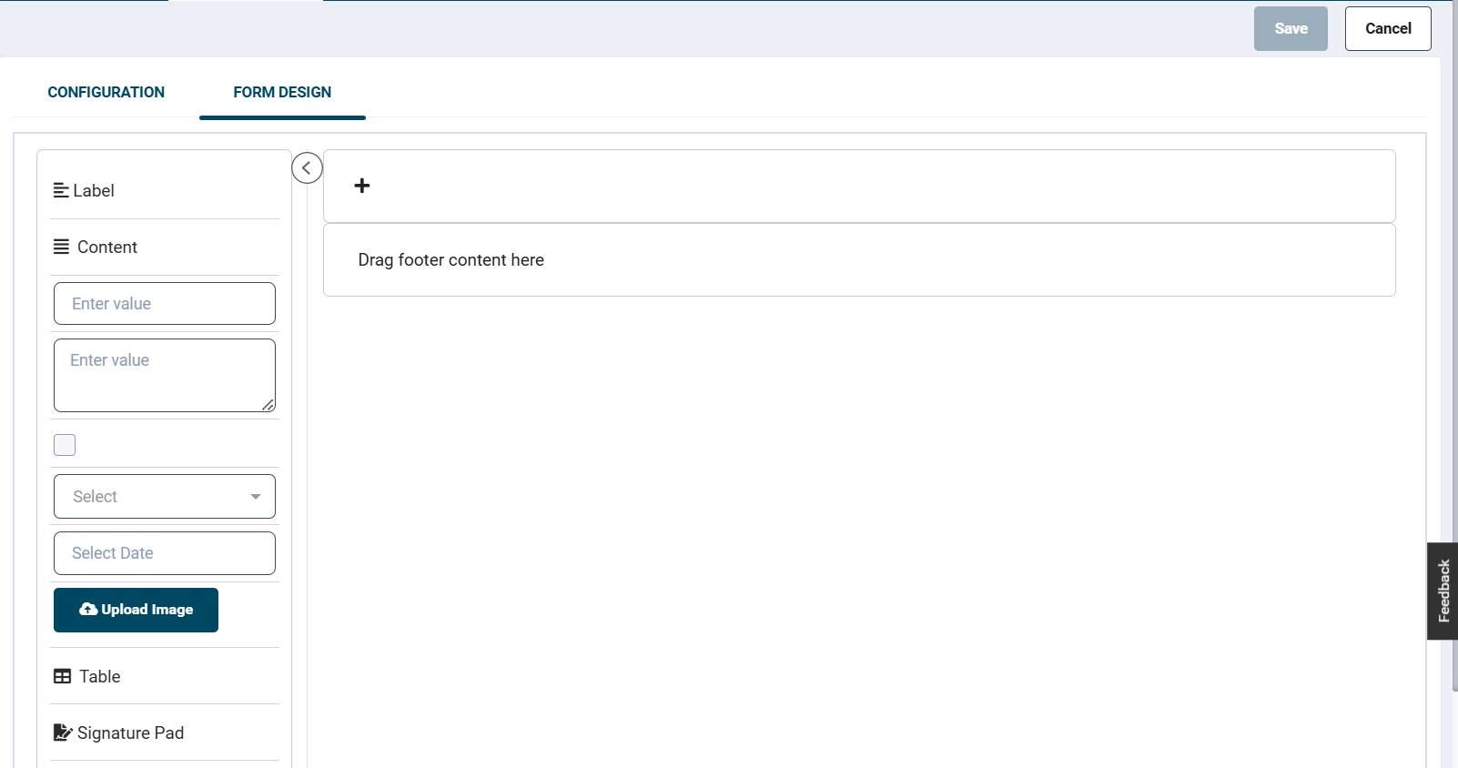 - The Footer can only be a Content function and will remain at the bottom of the digital form