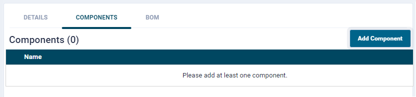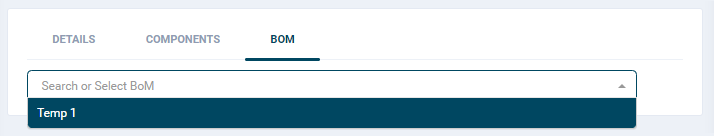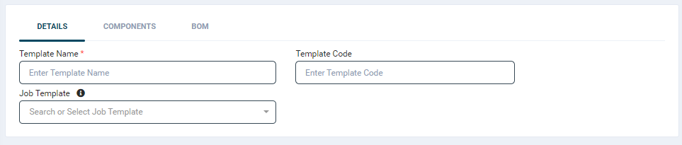 - The Template Details screen consists of 3 tabs: Details, Components and BoM