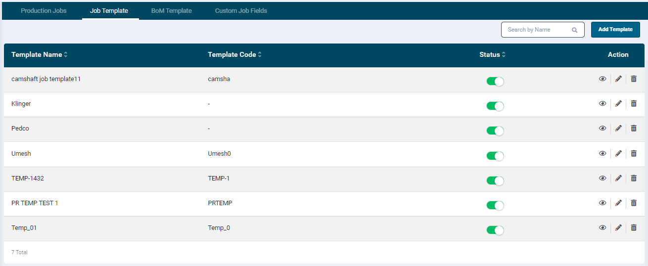 - The listing page displays all jobs template, allow the user to Create, Update and delete a template.