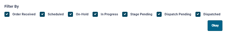 - The status filter can be accessed from the top right-hand side of the screen which will allow you to remove statuses from the list of jobs.