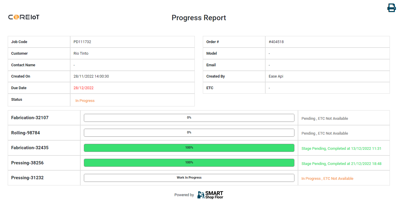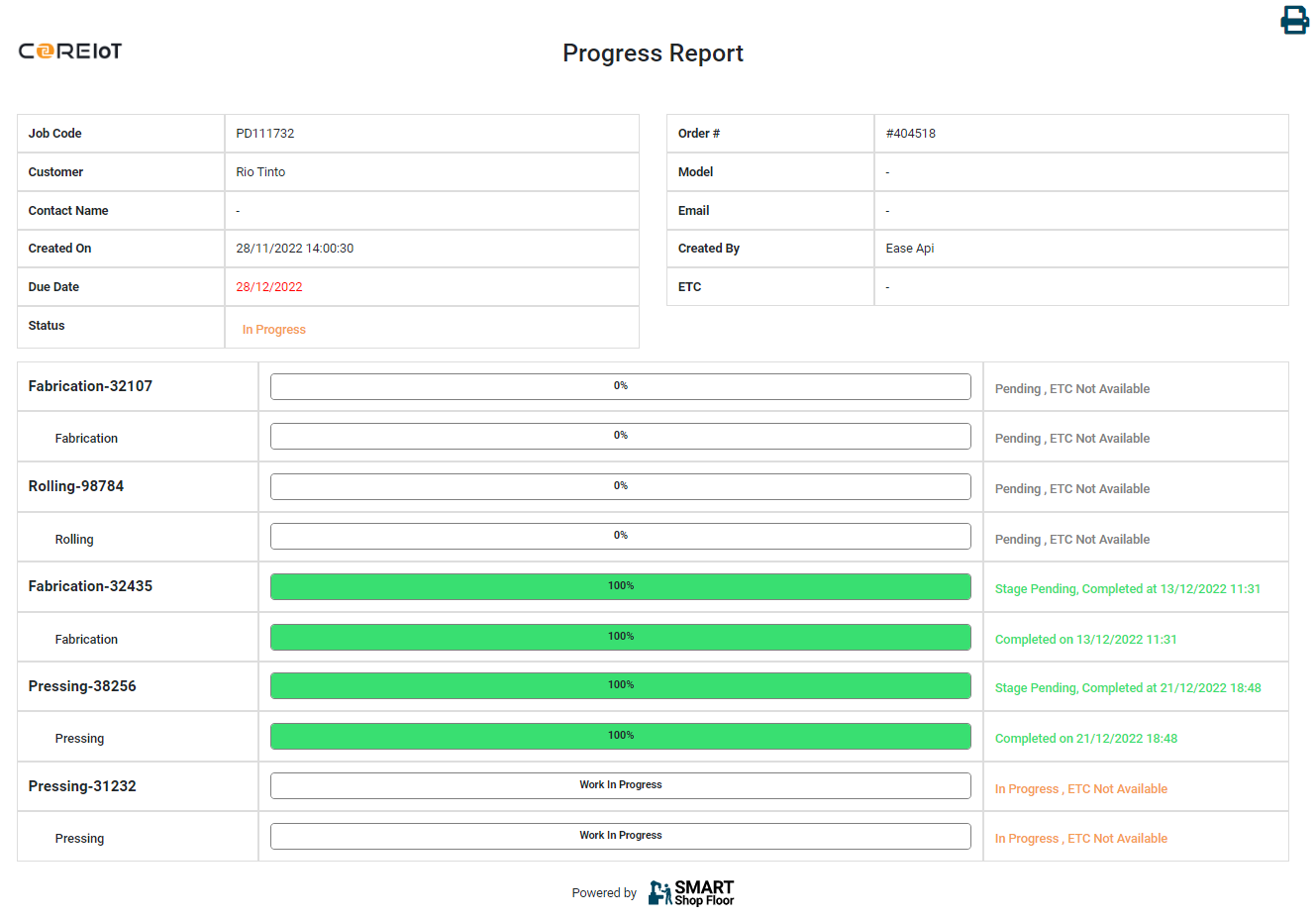 This section gives users a visual progress report of all jobs. It is based on the total components of a job with varying percentage of job completion