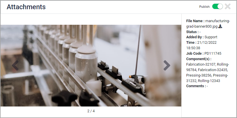 This icon is visible only when an image is attached to any job. Clicking on it will open a pop-up window.