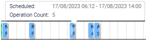 - When multiple operations are scheduled on the same day, they will be consolidated into a single tile. The tile's start time will correspond to the first operation's start time, and it will extend until the last operation's end time for that day.