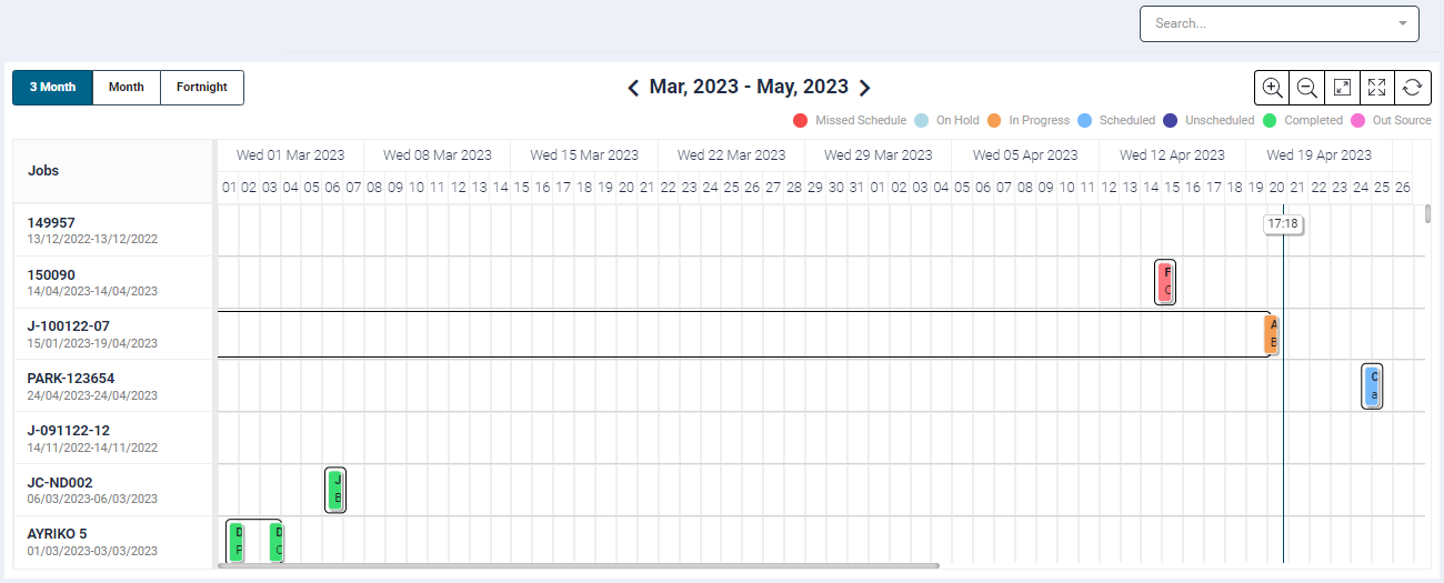 - To indicate a missed schedule, we have implemented a visual cue in the Gantt Chart.