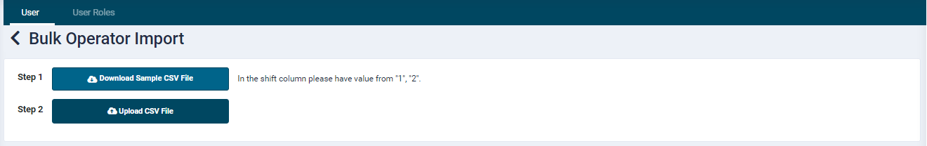 - Departments: Enter the departments assigned to the operator. This field would be mandatory when values are provided in the Shift column. Please ensure that the department names exist on the portal. Multiple departments separated by comma can be entered.