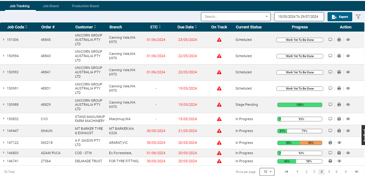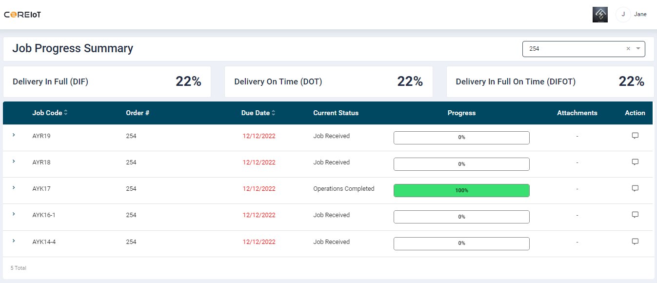 - The Job Progress Summary portal user (customer) can access this feature from the Job Progress listing page.