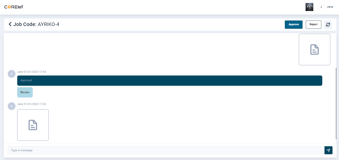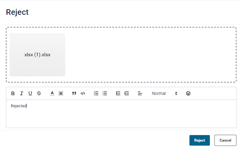 - Attach a relevant file, provide a reason for rejection and click the Approve button.