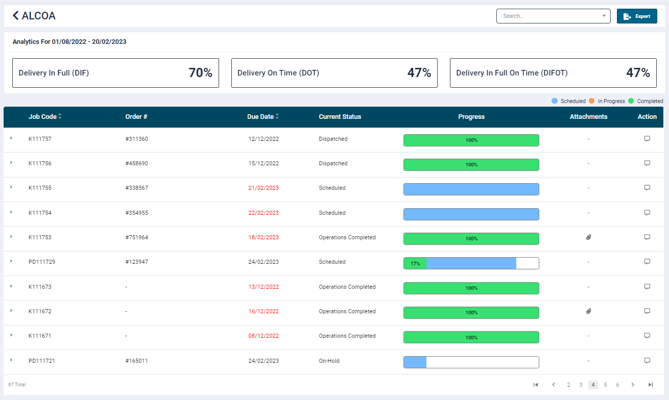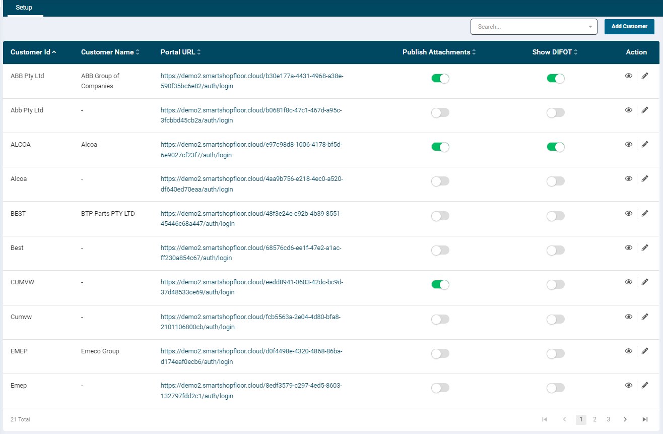 - Show DIFOT: This button allows you to display the delivery matrix on the customer portal. For more information please refer the Delivery Performance Metrics section