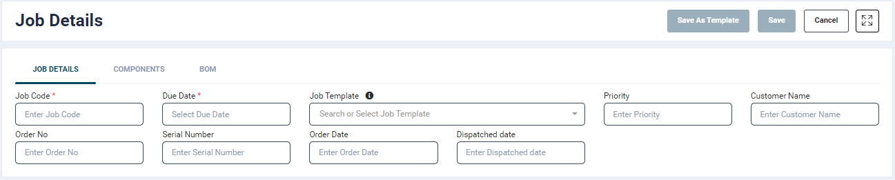On the Job Tracking listing page, clicking on the downward arrow provided at the beginning of the record will display the components under it.