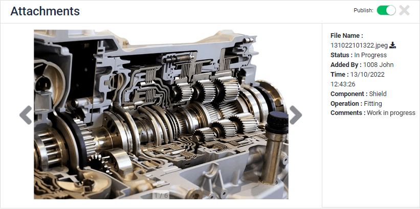 - Action: As mentioned above, the attachments will be available to the contact only if it is published by the user from the SmartShopFloor portal