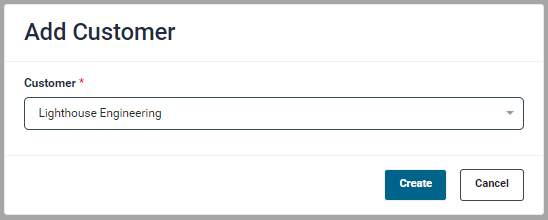 - In the pop-up window, search and select the customer name from the dropdown list and click Create.
