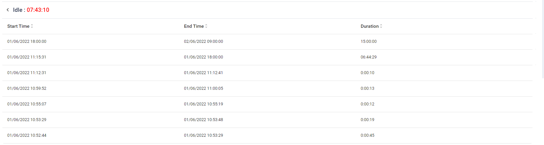 - Clicking on the Details icon provides a detailed timewise log of the downtime i.e. Start Time, End Time and Duration.