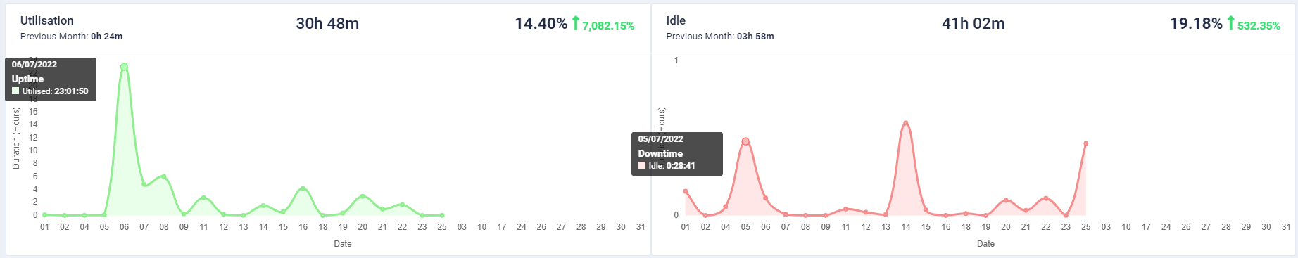 - They provide a comparison to previous month’s utilisation/Idle values.