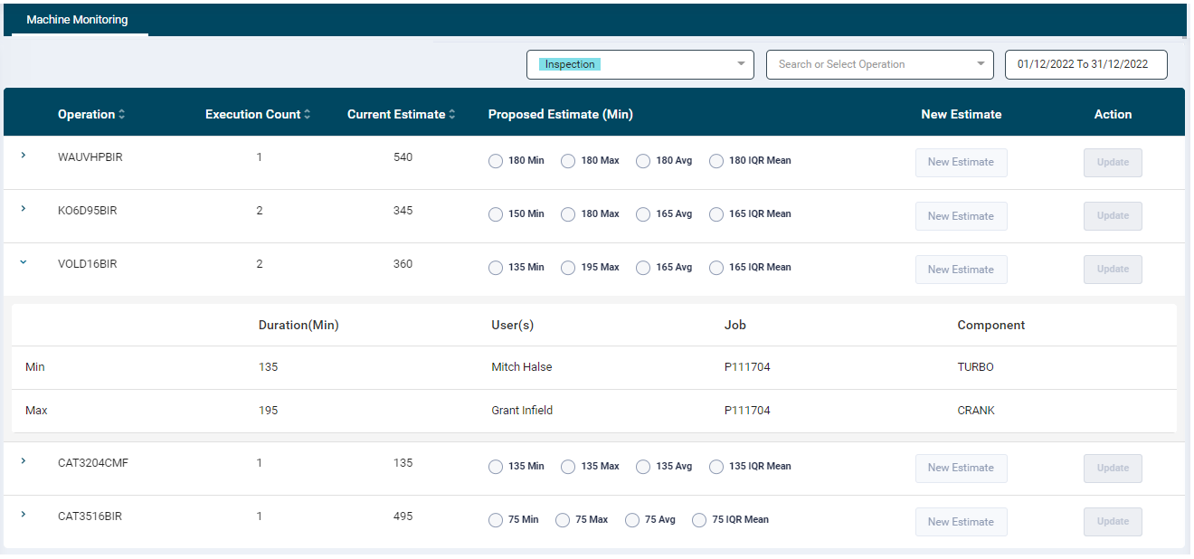 - Current Estimate: Displays the current estimated duration for that operation