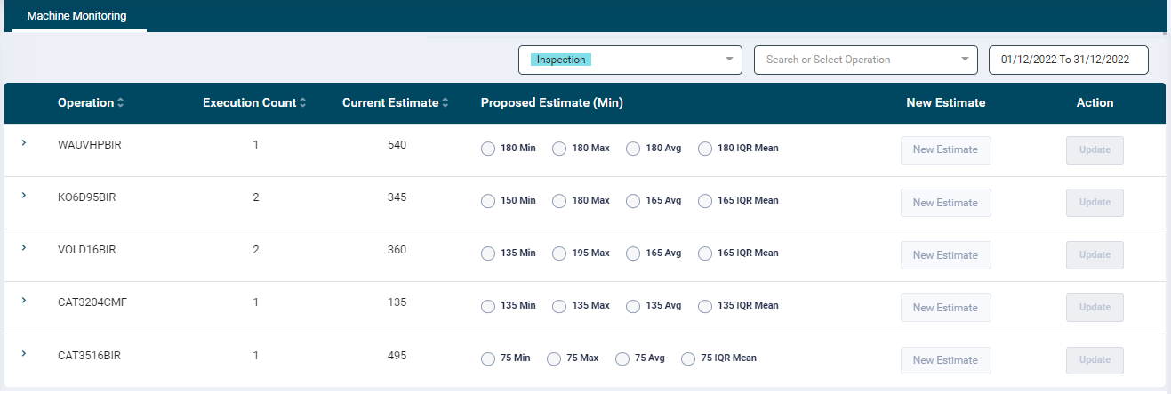 - Upon clicking update, the new operation estimate will be taken for operations in scheduling